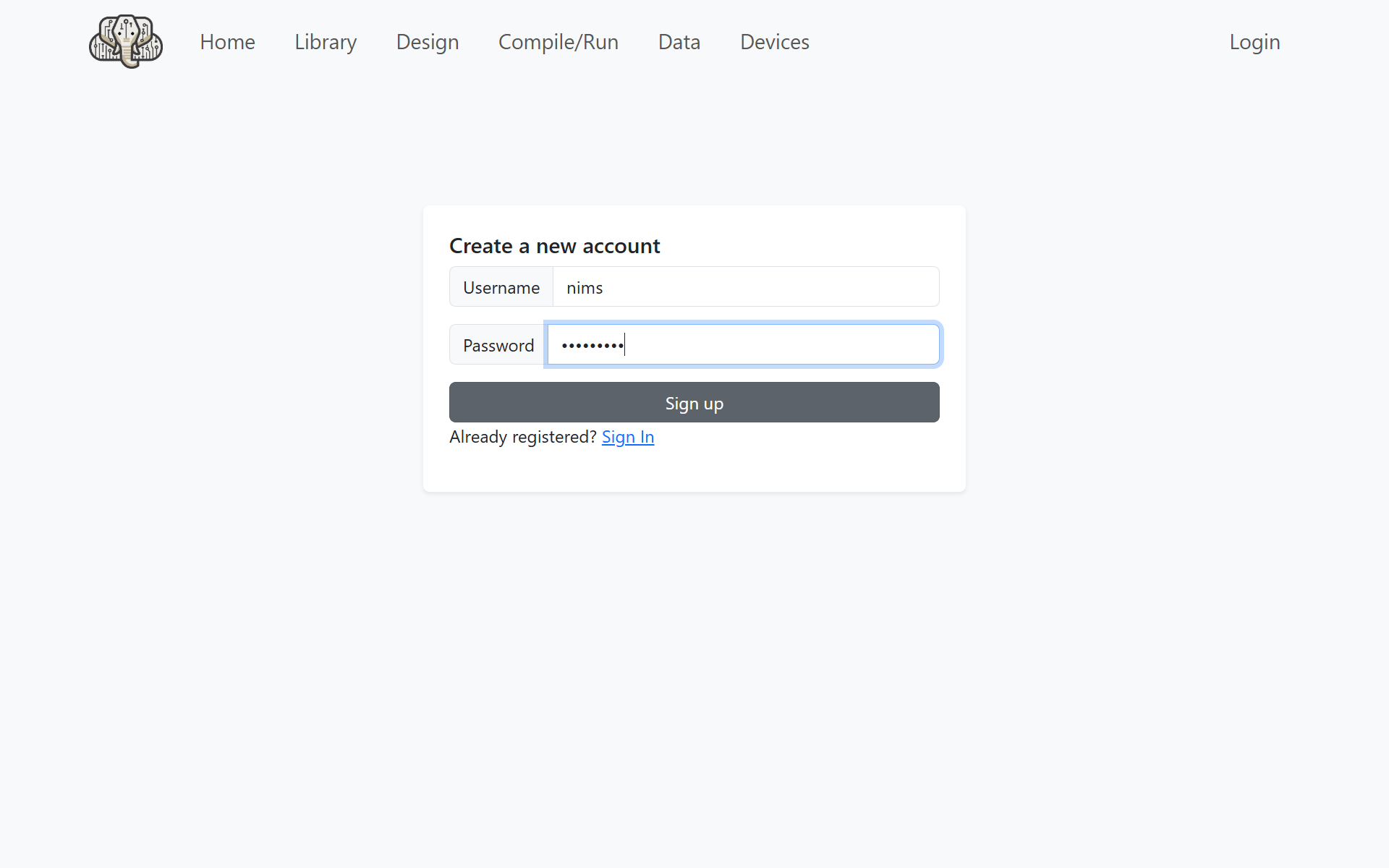 Click Create a new account and set your username and password.
