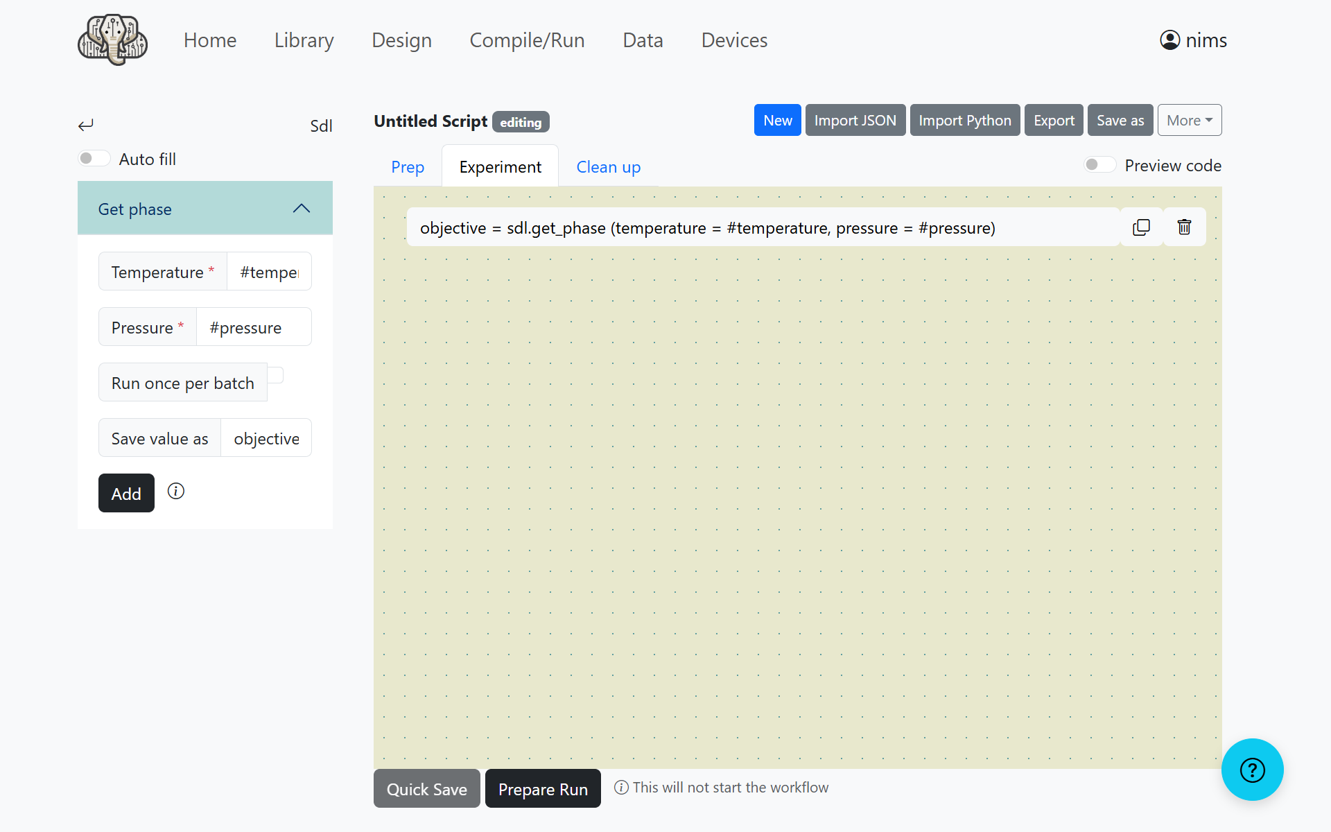 This page describes how to use NIMO with the IvoryOS interface, using the creation of a phase diagram for material X as an example.